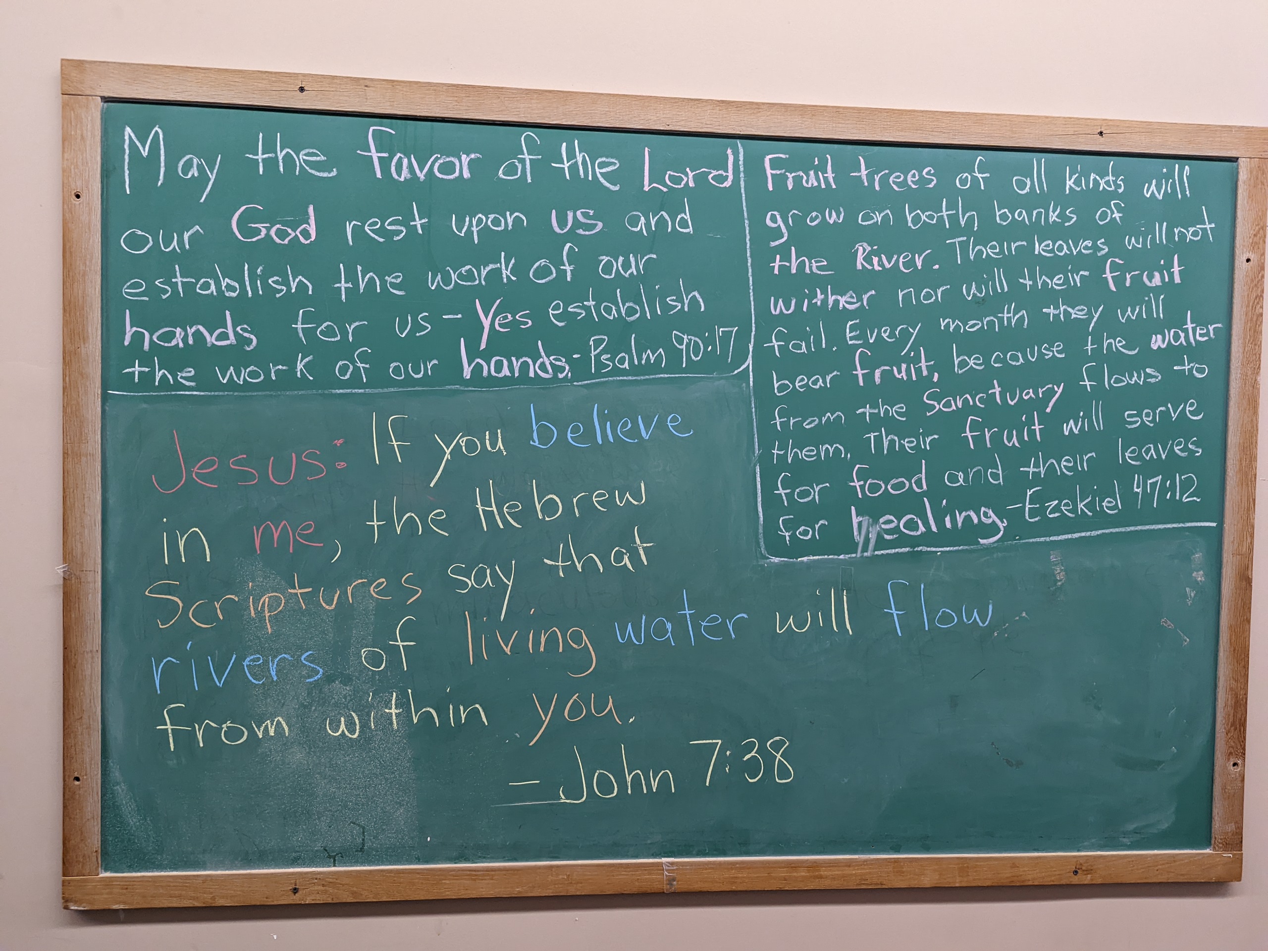 Scroll down through all the blackboards from the past 13 months here on this website! Notice the theme of about 50 different Scriptures… They focus…
