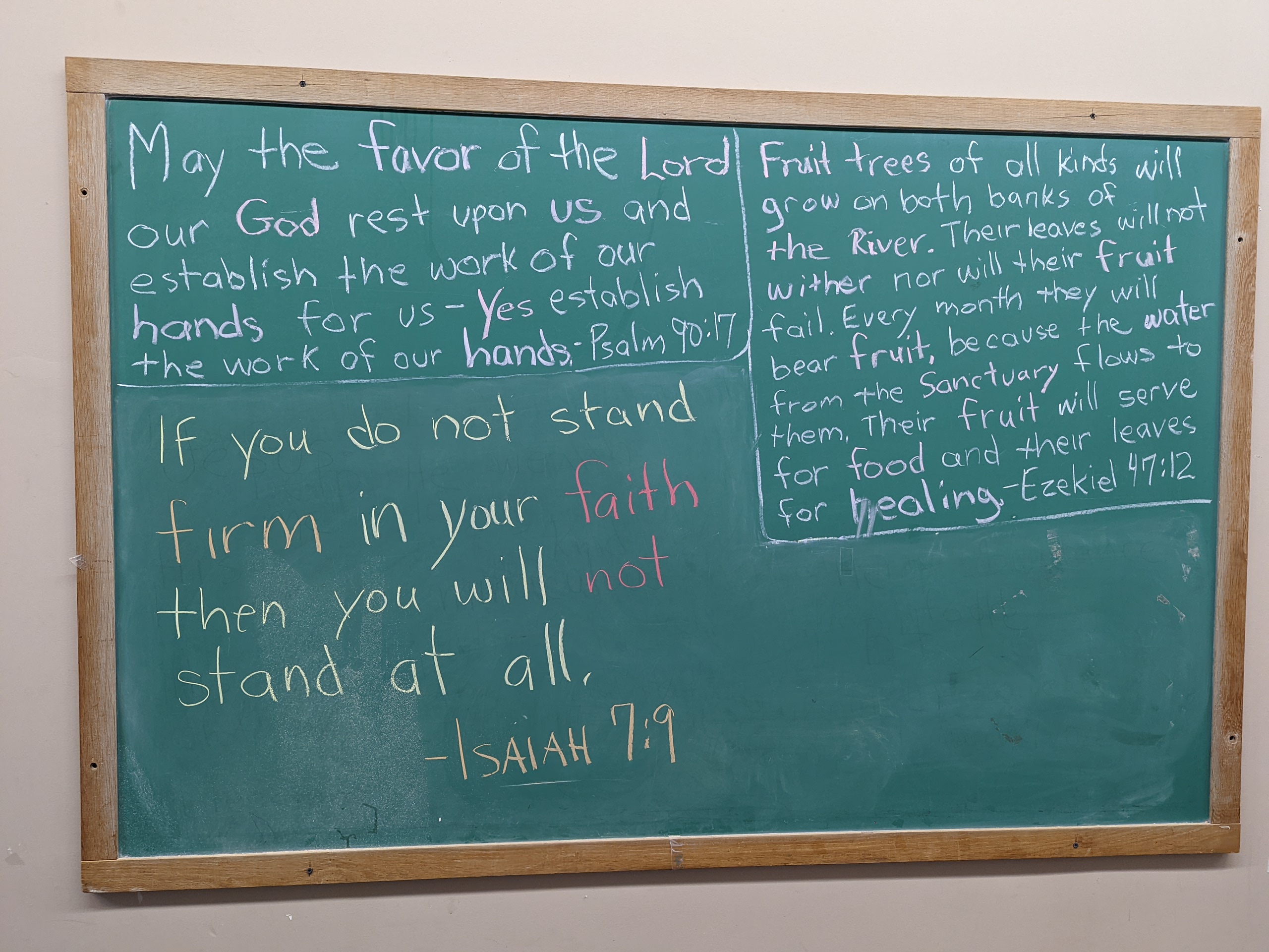 Scroll down through all the blackboards from the past 13 months here on this website! Notice the theme of about 50 different Scriptures… They focus…