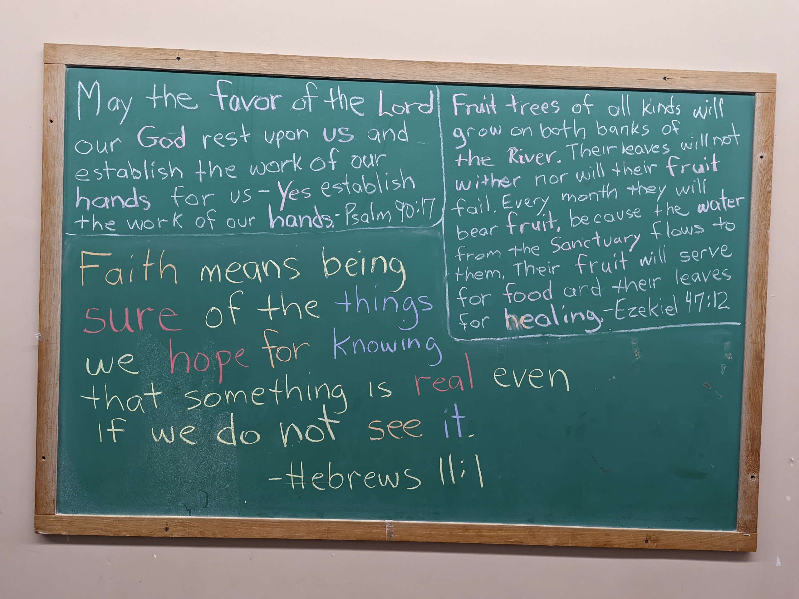 Scroll down through all the blackboards from the past 13 months here on this website! Notice the theme of about 50 different Scriptures… They focus…
