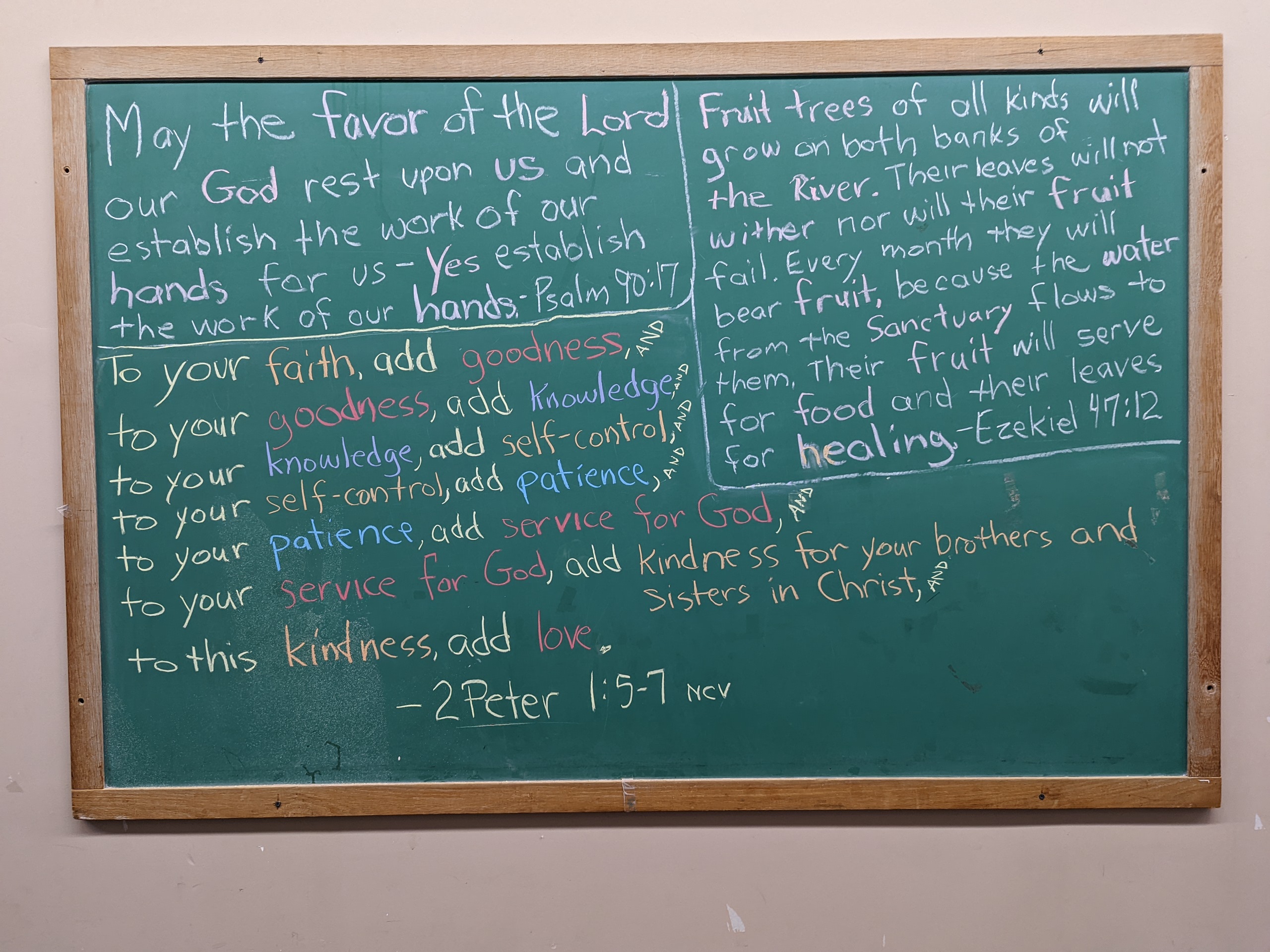 Scroll down through all the blackboards from the past 13 months here on this website! Notice the theme of about 50 different Scriptures… They focus…