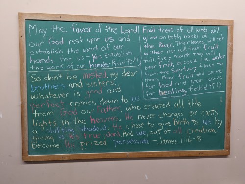 Scroll down through all the blackboards from the past 13 months here on this website! Notice the theme of about 50 different Scriptures… They focus…