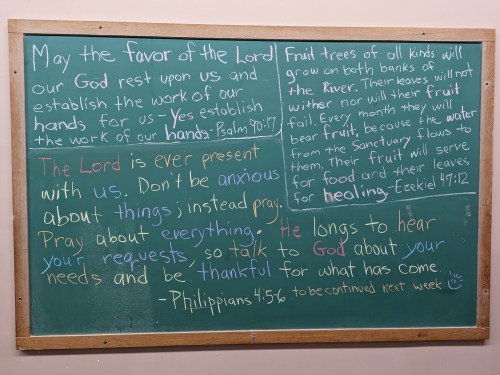 Scroll down through all the blackboards from the past 13 months here on this website! Notice the theme of about 50 different Scriptures… They focus…