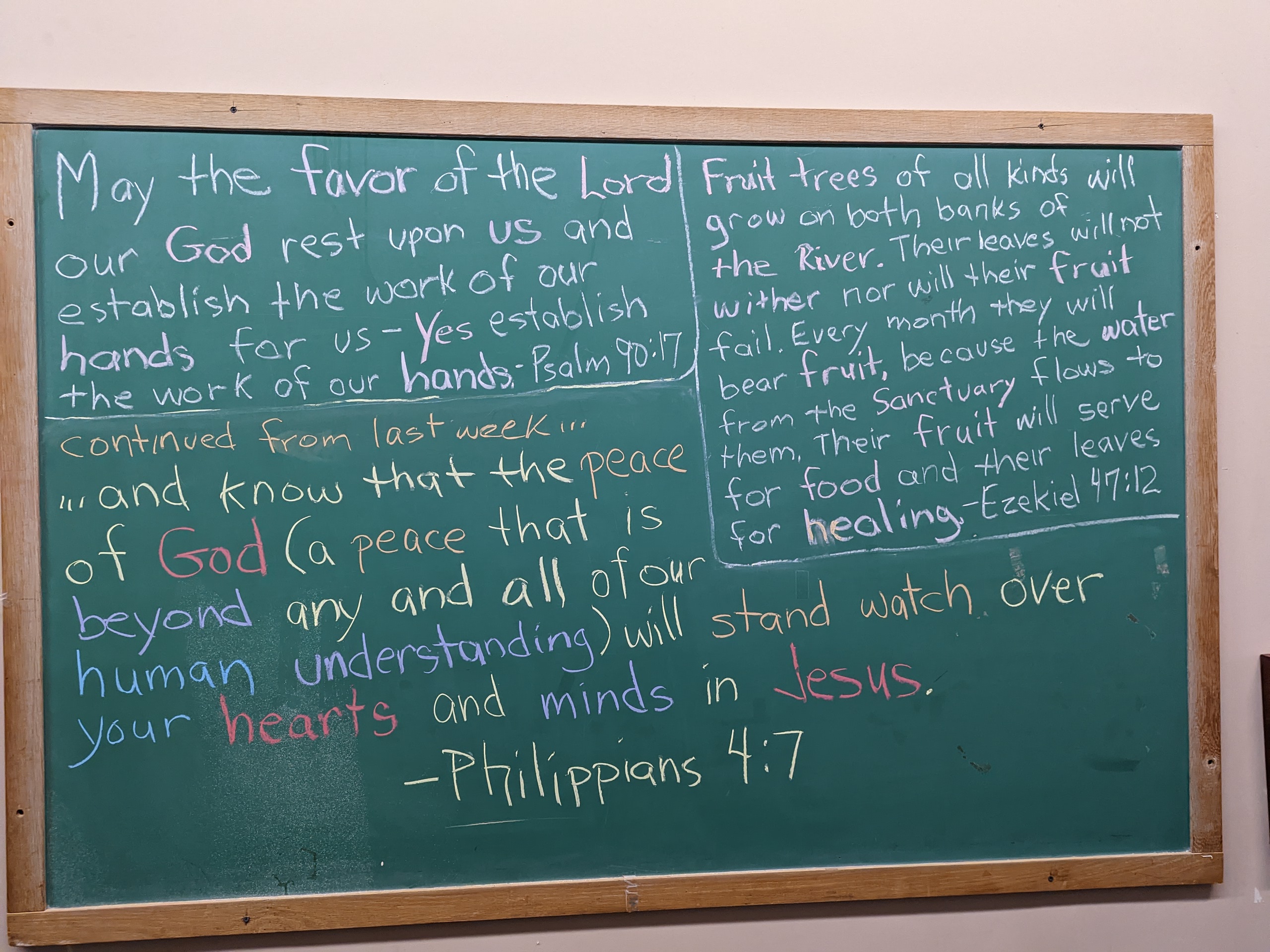 Scroll down through all the blackboards from the past 13 months here on this website! Notice the theme of about 50 different Scriptures… They focus…
