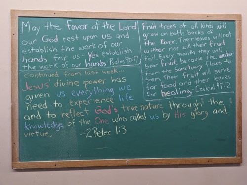 Scroll down through all the blackboards from the past 13 months here on this website! Notice the theme of about 50 different Scriptures… They focus…