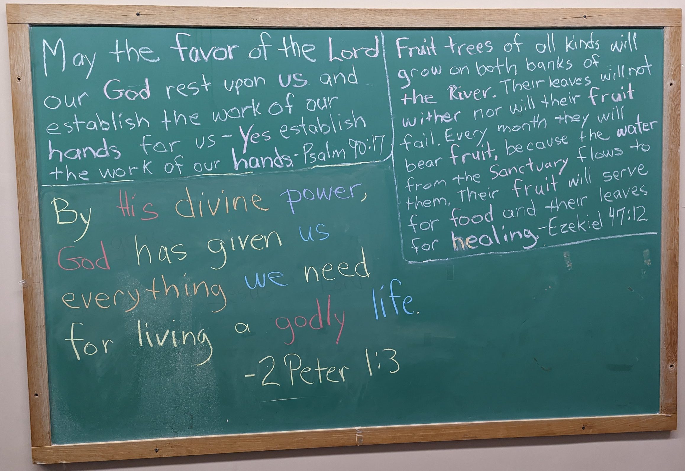Scroll down through all the blackboards from the past 13 months here on this website! Notice the theme of about 50 different Scriptures… They focus…