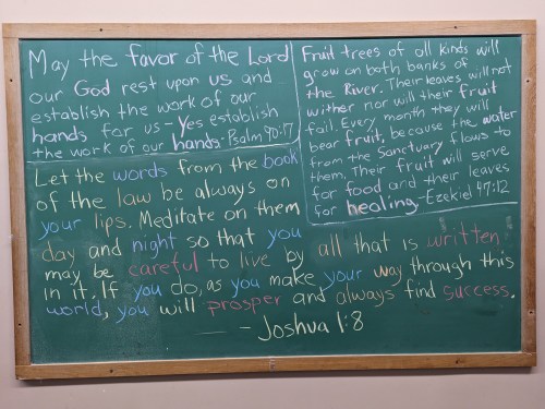 Scroll down through all the blackboards from the past 13 months here on this website! Notice the theme of about 50 different Scriptures… They focus…