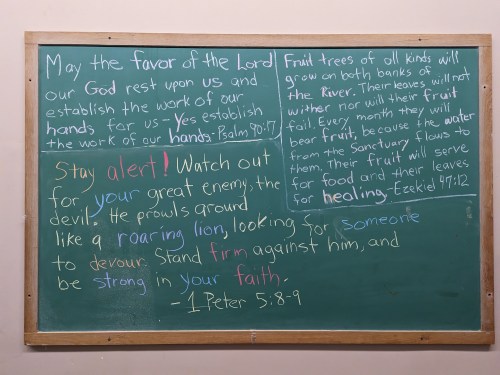 Scroll down through all the blackboards from the past 13 months here on this website! Notice the theme of about 50 different Scriptures… They focus…
