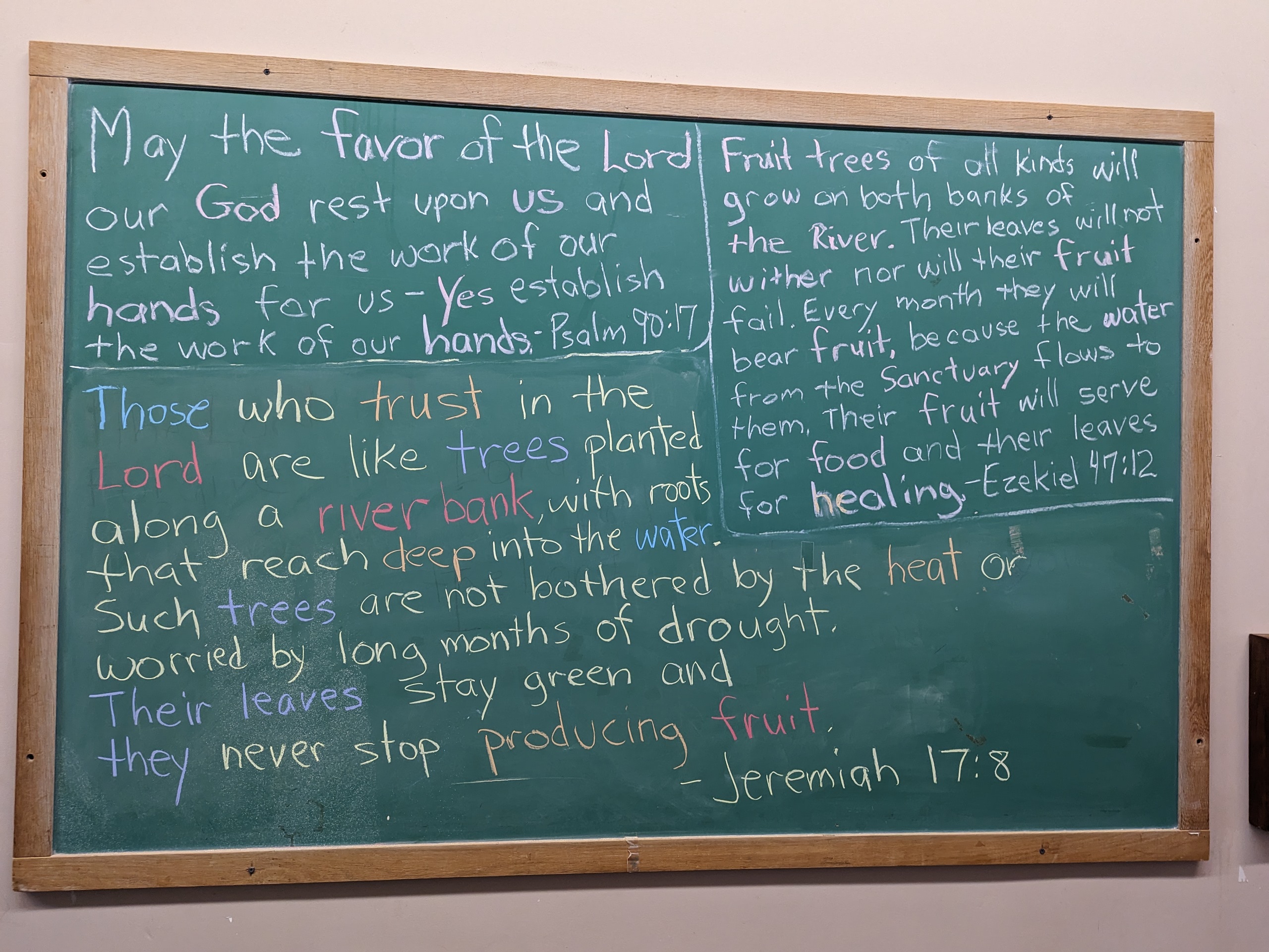 Scroll down through all the blackboards from the past 13 months here on this website! Notice the theme of about 50 different Scriptures… They focus…