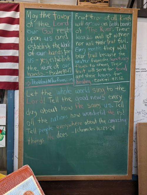 Scroll down through all the blackboards from the past 13 months here on this website! Notice the theme of about 50 different Scriptures… They focus…