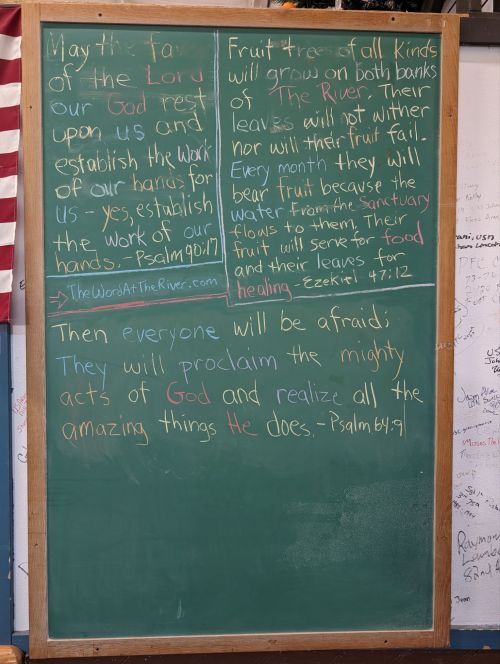 Scroll down through all the blackboards from the past 13 months here on this website! Notice the theme of about 50 different Scriptures… They focus…
