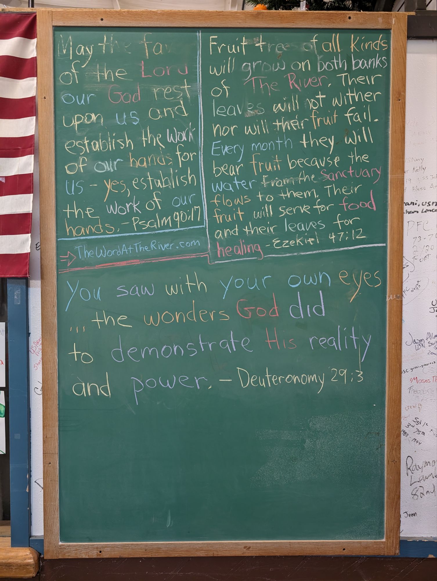Scroll down through all the blackboards from the past 13 months here on this website! Notice the theme of about 50 different Scriptures… They focus…