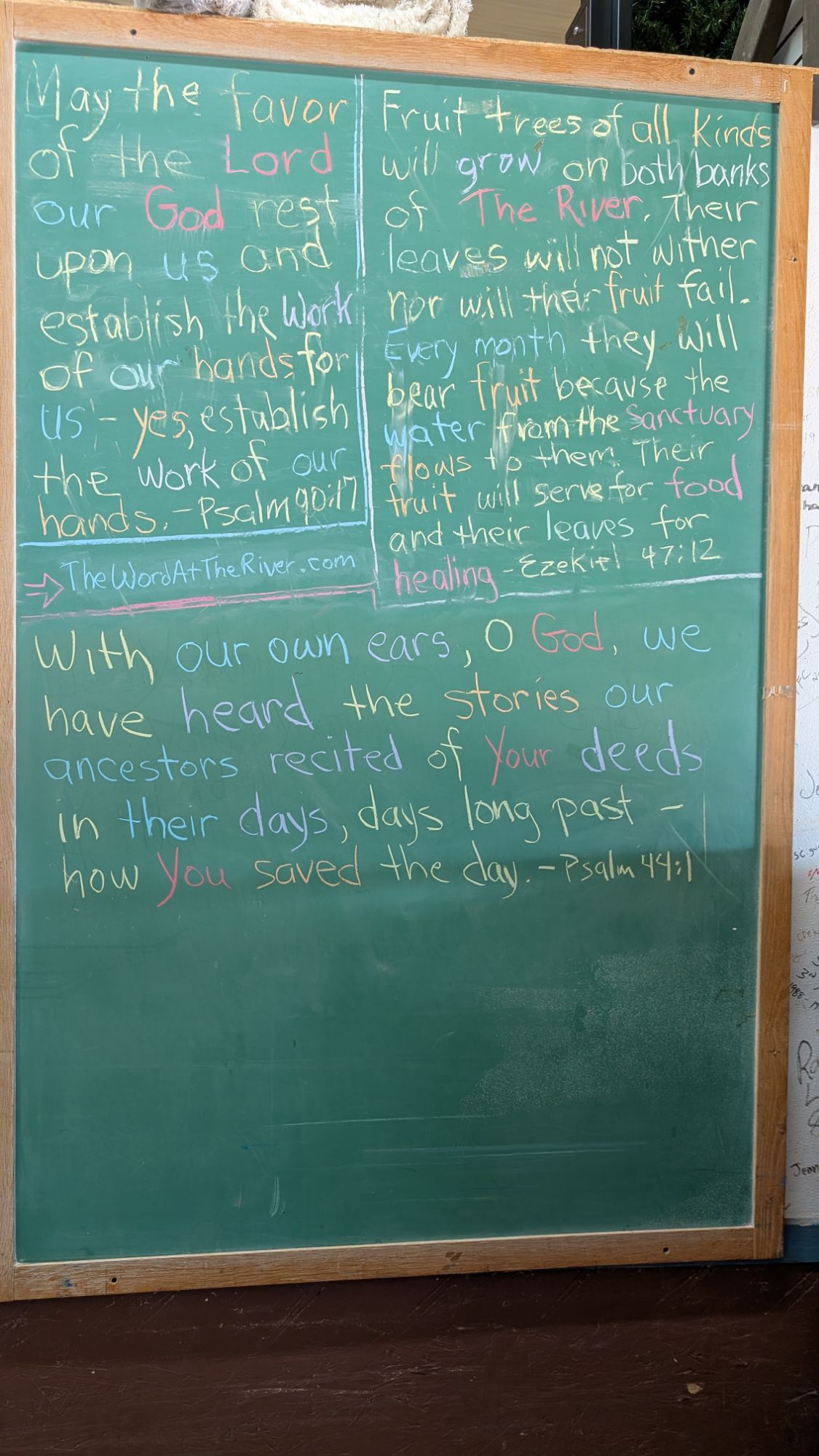 Scroll down through all the blackboards from the past 13 months here on this website! Notice the theme of about 50 different Scriptures… They focus…