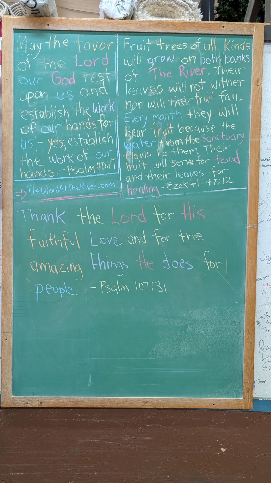 Scroll down through all the blackboards from the past 13 months here on this website! Notice the theme of about 50 different Scriptures… They focus…
