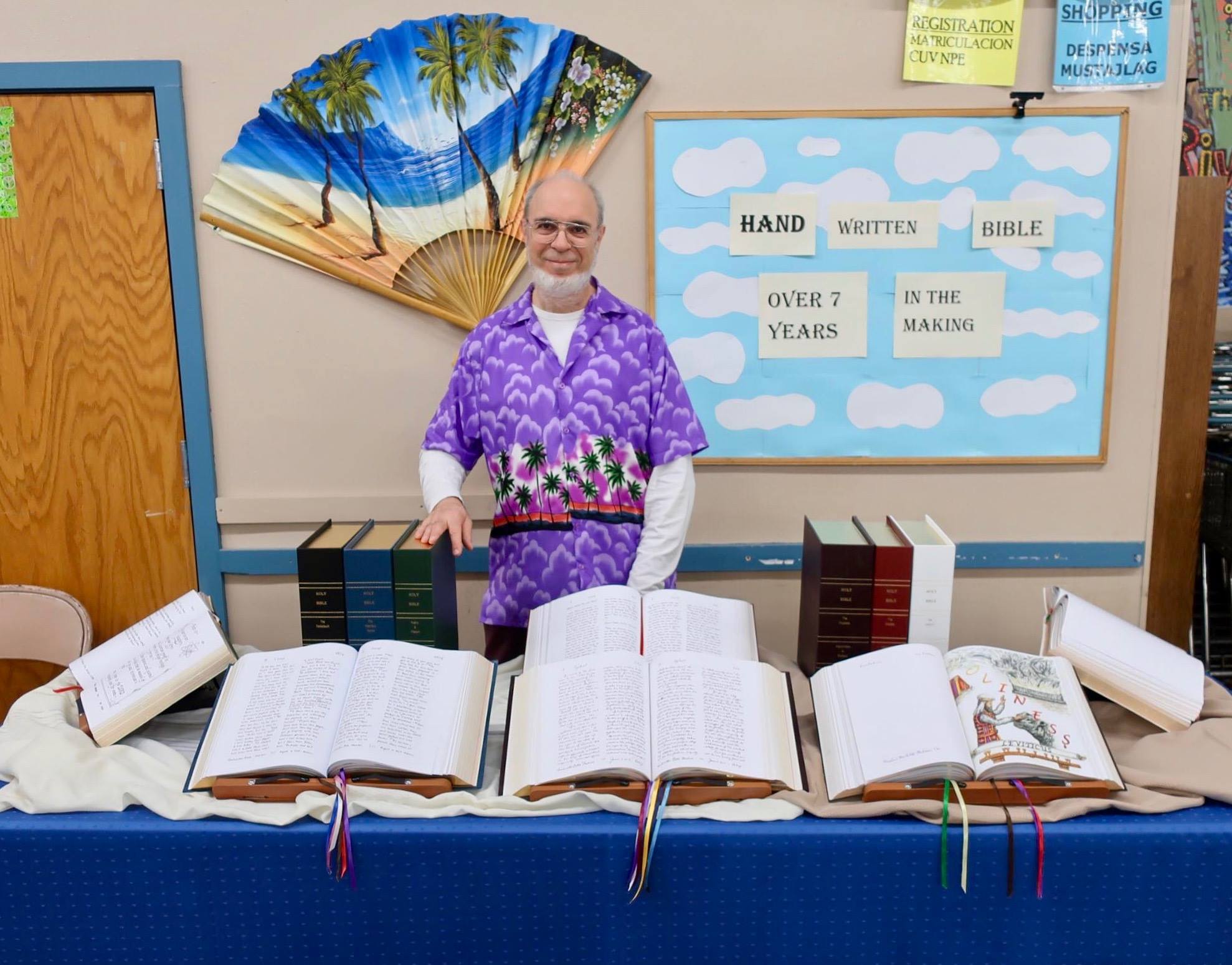 In addition to those three main focal points, The River was a major focal point for seven years of working on the Handwritten Bible … and was the first public display of it when all six volumes were completed*: