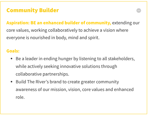 *Photos taken by Len Lindsay or from The River’s social media. The River’s Mission, Guiding Principle, Core Values are from this River webpage; the Aspirations are from this River webpage.