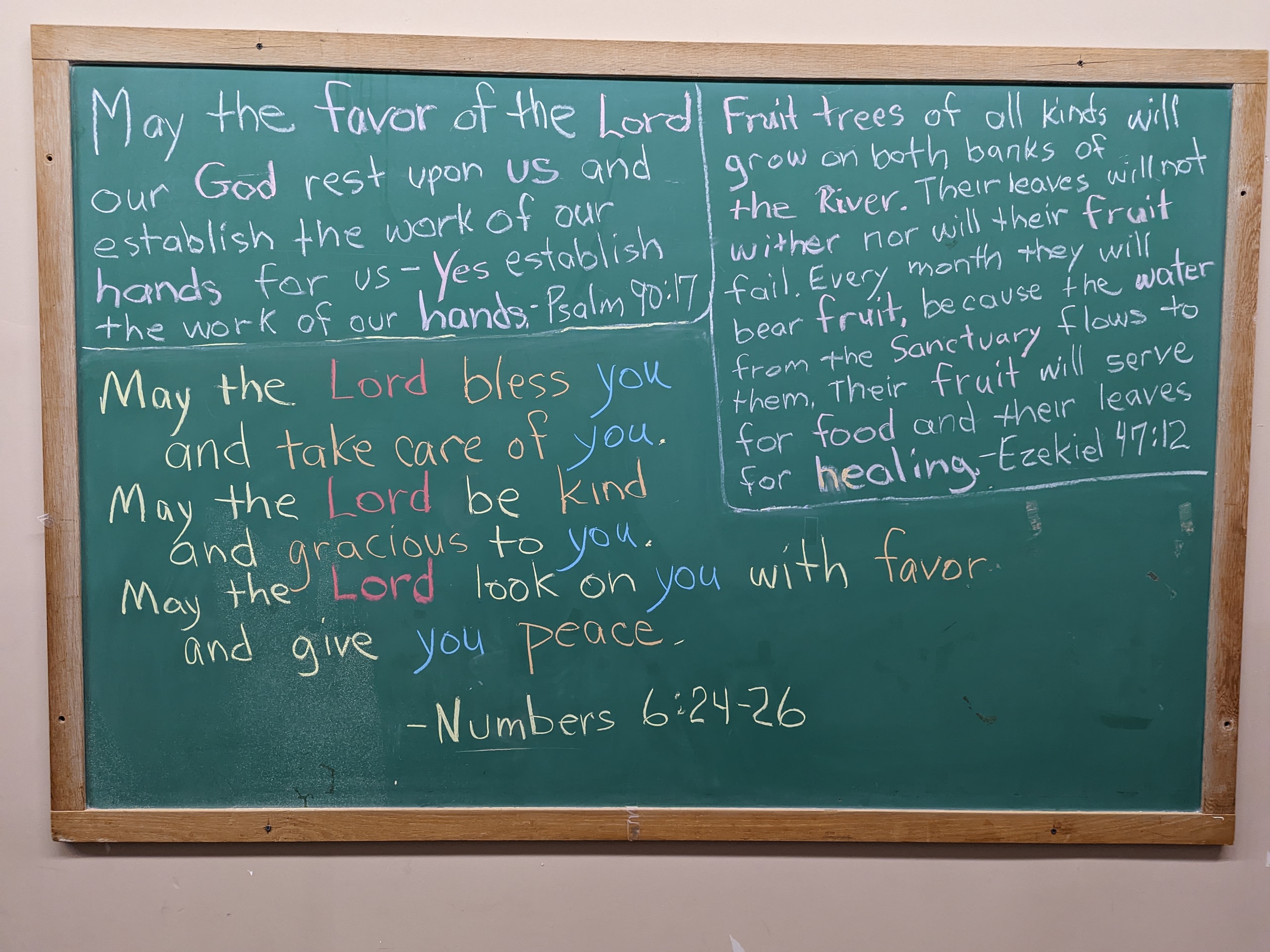 Scroll down through all the blackboards from the past 13 months here on this website! Notice the theme of about 50 different Scriptures… They focus on the Scripture for today…