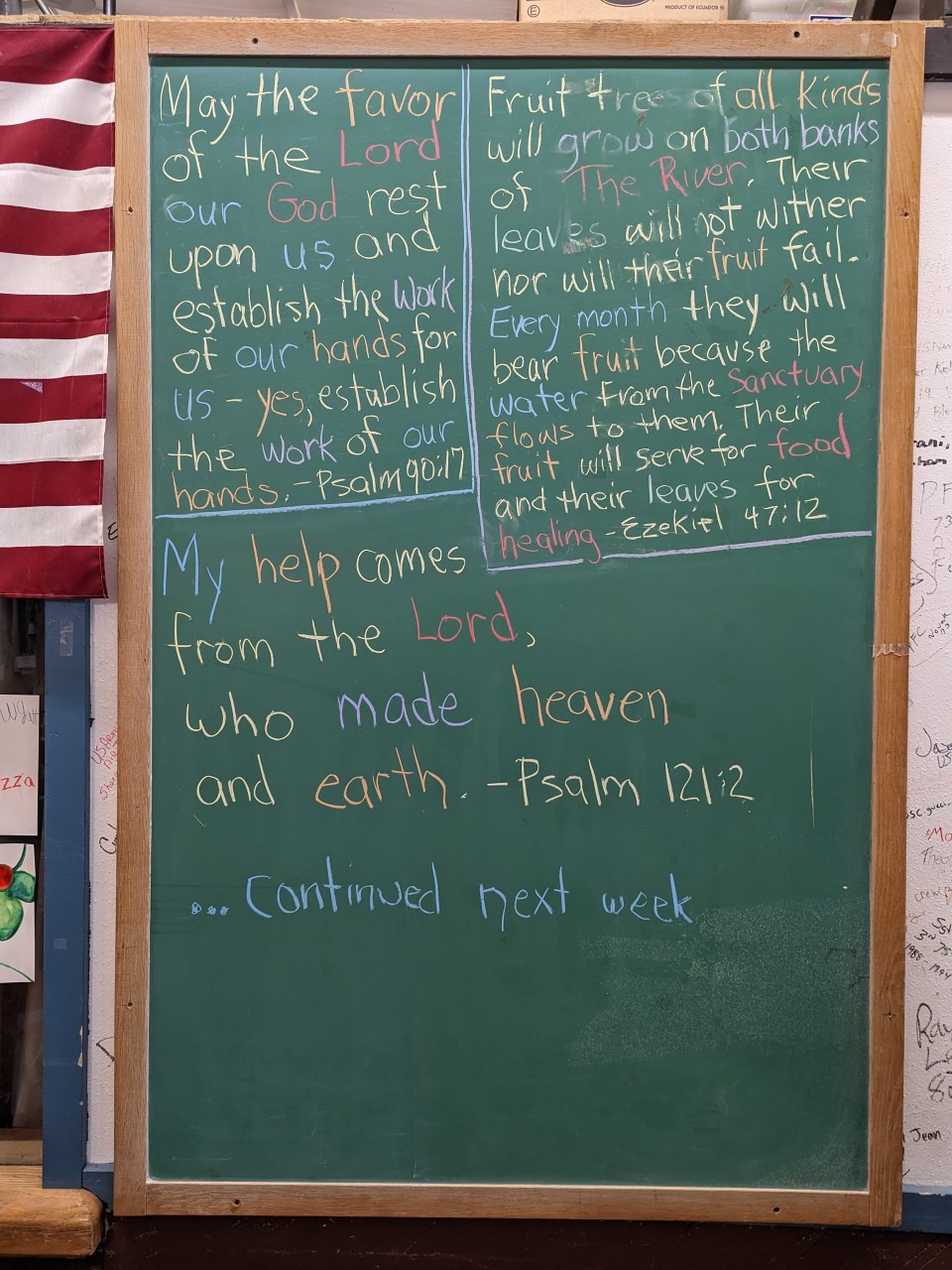 My help comes from the Lord, who made heaven and earth. (Psalm 121:2) … continued next week